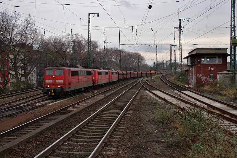 Am 31.01.2008 befördert 151 089 und Schwester einen Erzzug und ist bei der Durchfahrt in Köln-Süd zu sehen.