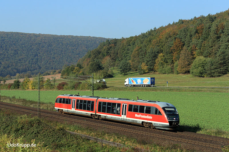 642 129 durchfährt am 23.10.2010 das Maintal, hier in Höhe der Staustufe Harbach